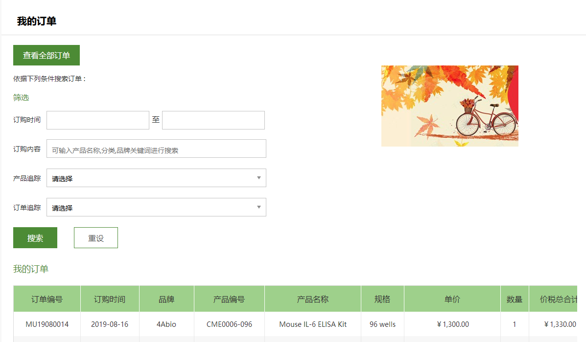 2、注冊完成后在搜索框內(nèi)搜索您需要的產(chǎn)品貨號或者名稱,如下演示產(chǎn)品搜索: