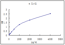 The mouse IL-21 ELISA (Enzyme-Linked Immunosorbent Assay) kit is designed for detection of IL-21 in mouse plasma, serum, and cell culture samples.This assay employs a quantitative sandwich enzyme immunoassay technique that measures mouse IL-21 in approximately 3.5 hours. A polyclonal antibody specific form mouse IL-21 has been pre-coated onto a 96-well microplate with removable strips. IL-21 in standards and samples is sandwiched by the immobilized antibody and a biotinylated polyclonal antibody specific for mouse IL-21, which is recognized by a streptavidin-peroxidase (SP) conjugate. All unbound material is washed away and a peroxidase enzyme substrate is added. The color development is stopped and the intensity of the color is measured.