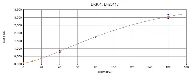 DKK-1 is a 25.8 kDa secreted protein functioning as antagonist of the canonical Wnt signaling pathway. It is a member of the dickkopf-related protein family characterized by two cysteine-rich domains separated by a linker region. Binding of DKK-1 to the LRP5/6 co-receptor inhibits the interaction with Wnt and by forming a ternary complex with transmembrane Kremen-1 or -2, promotes the internalization of LRP5/6.