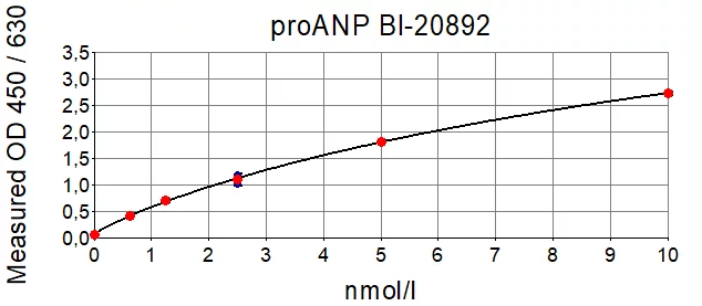 The ANP prohormone undergoes several cleavages to generate the biologically active form of the hormone. N-terminal (NT) prohormone fragments of natriuretic peptides are typically more stable, have longer half-lives, and circulate at higher concentrations compared to C-terminal biologically active hormone ends (Yandle et al., 1986). It has therefore been suggested that measuring NT prohormone fragments of ANP provide more accurate concentrations in samples (Clerico et al., 2011).