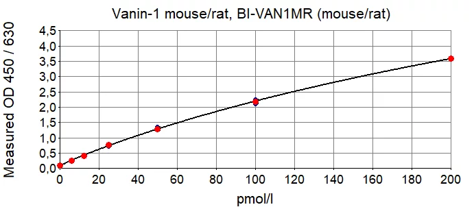 Vanin-1 is a GPI-anchored glycoprotein of 513 amino acids consisting of a base domain and an enzymatic nitrilase domain (Boersma et al., 2014). The ectoenzyme catalyzes the hydrolysis of pantetheine to pantothenic acid (vitamin B5) and cyteamine and thus, is involved in the regulation of oxidative stress and inflammation (Maras et al., 1999). Vanin-1 has a broad tissue expression with the highest levels being observed in kidney tubular epithelial cells (Pitari et al., 2000).The GPI anchor of Vanin-1 can be cleaved by a yet unknown mechanism, resulting in Vanin-1 being shed into the extracellular space.