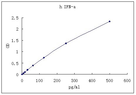 The Human IFN-α ELISA (Enzyme-Linked Immunosorbent Assay) kit is designed for detection of IFN-α in human plasma, serum, and cell culture samples.This assay employs a quantitative sandwich enzyme immunoassay technique that measures human IFN-α in approximately 3 hours. A polyclonal antibody specific for human IFN-α has been pre-coated onto a 96-well microplate with removable strips. IFN-α in standards and samples is sandwiched by the immobilized antibody and a biotinylated polyclonal antibody specific for human IFN-α, which is recognized by a streptavidin-peroxidase (SP) conjugate. All unbound material is washed away and a peroxidase enzyme substrate is added. The color development is stopped and the intensity of the color is measured.