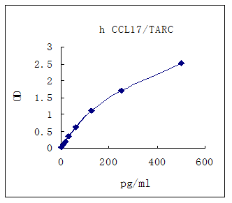 The Human CCL17/TARC ELISA (Enzyme-Linked Immunosorbent Assay) kit is designed for detection of CCL17/TARC in human plasma, serum, and cell culture samples.This assay employs a quantitative sandwich enzyme immunoassay technique that measures human CCL17/TARC in approximately 3.5 hours. A polyclonal antibody specific for human CCL17/TARC has been pre-coated onto a 96-well microplate with removable strips. CCL17/TARC in standards and samples is sandwiched by the immobilized antibody and a biotinylated polyclonal antibody specific for human CCL17/TARC, which is recognized by a streptavidin-peroxidase (SP) conjugate. All unbound material is washed away and a peroxidase enzyme substrate is added. The color development is stopped and the intensity of the color is measured.