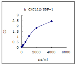 The Human CXCL12/SDF-1 ELISA (Enzyme-Linked Immunosorbent Assay) kit is designed for detection of CXCL12/SDF-1 in human plasma, serum, and cell culture samples.This assay employs a quantitative sandwich enzyme immunoassay technique that measures human CXCL12/SDF-1 in approximately 3.5 hours. A polyclonal antibody specific for human CXCL12/SDF-1 has been pre-coated onto a 96-well microplate with removable strips. CXCL12/SDF-1 in standards and samples is sandwiched by the immobilized antibody and a biotinylated polyclonal antibody specific for human CXCL12/SDF-1, which is recognized by a streptavidin-peroxidase (SP) conjugate. All unbound material is washed away and a peroxidase enzyme substrate is added. The color development is stopped and the intensity of the color is measured.