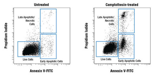 目前至少有十?dāng)?shù)種檢測(cè)細(xì)胞凋亡的方法,從大框架上講,可以劃分為基于細(xì)胞形態(tài)、生物學(xué)功能和生化標(biāo)記三大類。這里簡(jiǎn)要介紹一下最受歡迎的“Annexin V/PI雙染法”進(jìn)行流式細(xì)胞術(shù)質(zhì)膜分析。