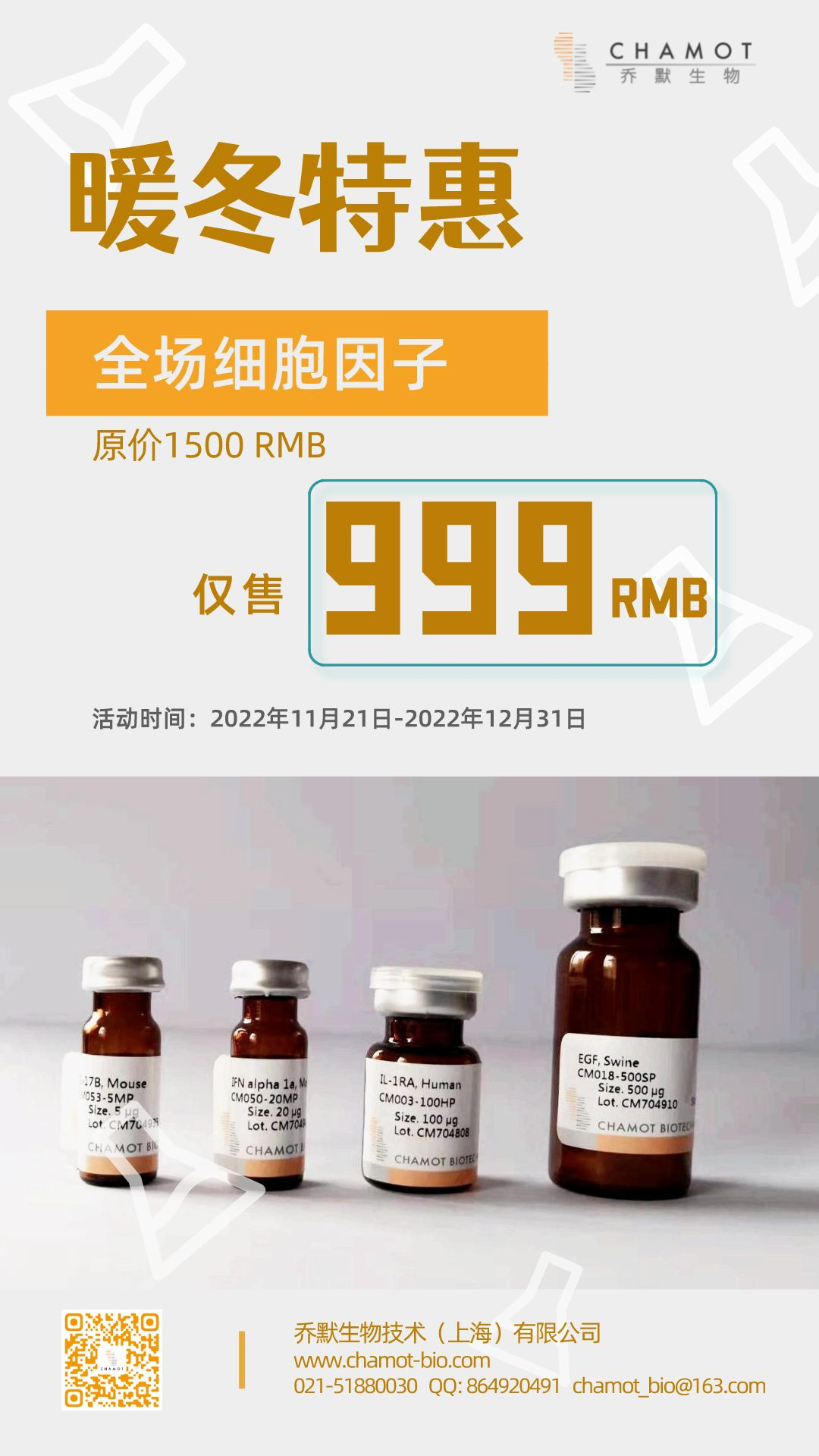 活動(dòng)內(nèi)容:喬默全線重組細(xì)胞因子,售價(jià)1500RMB規(guī)格產(chǎn)品,購(gòu)買(mǎi)即可享受特惠價(jià)999RMB。